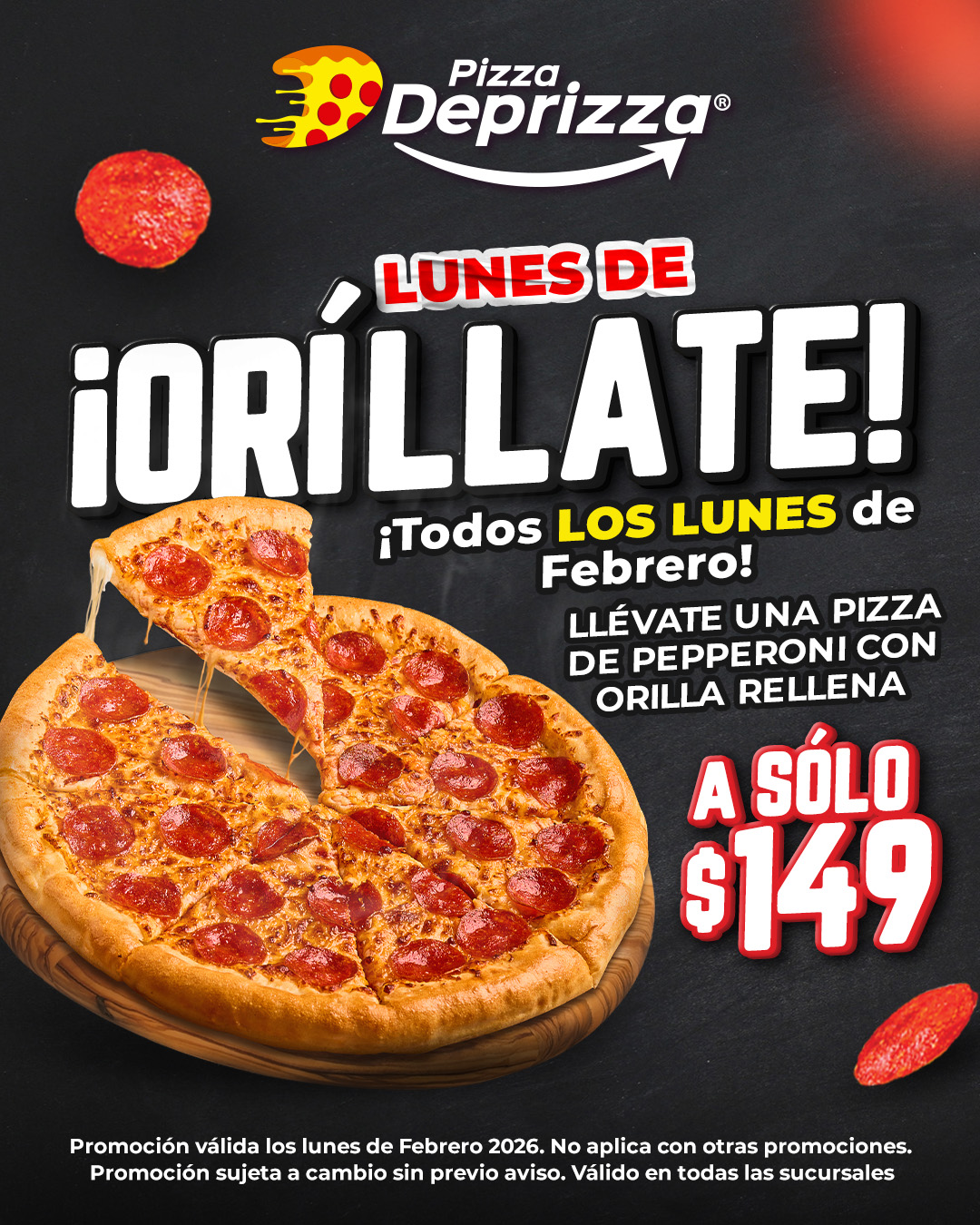 ¡Llévate una Pizza de Pepperoni con orilla rellena a sólo $149! 😍 ¡Promoción válida sólo los lunes de Febrero 2026!